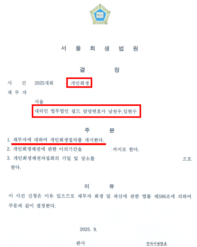 개인회생절차 개시결정
